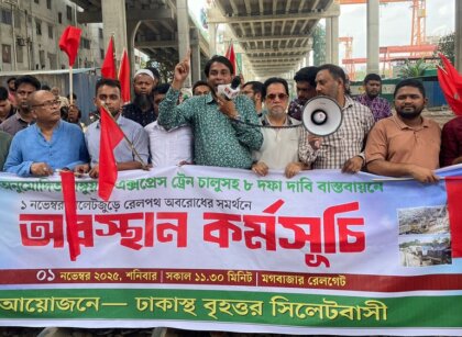 ৮ দাবিতে সিলেটবাসীর রেলপথ অবরোধ