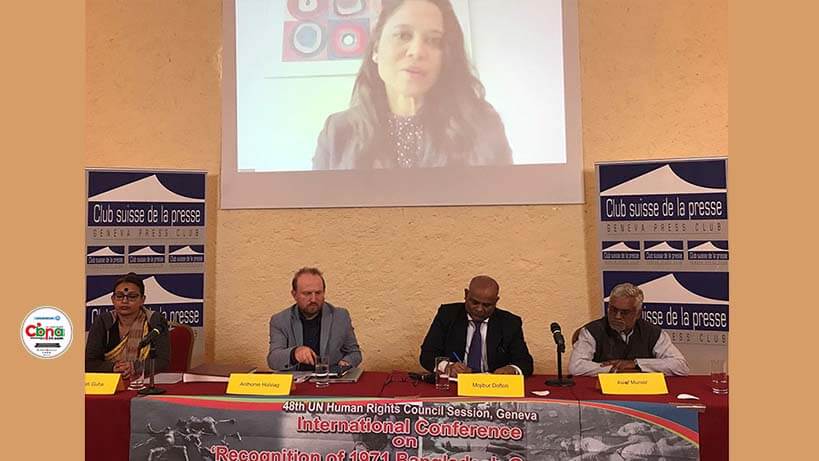 জেনেভায় এক আন্তর্জাতিক সম্মেলনে বক্তারা বলেছেন, ১৯৭১ সালে পাকিস্তানি সেনা সদস্য ও তাদের দোসরদের সংঘটিত বাংলাদেশে গণহত্যার স্বীকৃতির সময় এসেছে। গণহত্যার শিকার এবং তাদের বংশধরদের স্বীকৃতির মাধ্যমে সম্মানিত করা অত্যন্ত গুরুত্বপূর্ণ এবং সময়ের দাবি। স্বীকৃতির আরও গুরুত্বপূর্ণ মর্মার্থ হলো, এই গণহত্যার সাথে জড়িতদের চিহ্নিত করা এবং বিচারের আওতায় আনা। দুর্ভাগ্যবশত, বাংলাদেশিদের বিরুদ্ধে সংঘটিত গণহত্যা আজ ইতিহাসের একটি বিস্মৃত অধ্যায় হয়ে দাঁড়িয়েছে এবং আমরা সবাই জানি যে, ‘বিচারে দীর্ঘসূত্রিতা বিচারহীনতার নামান্তর।’