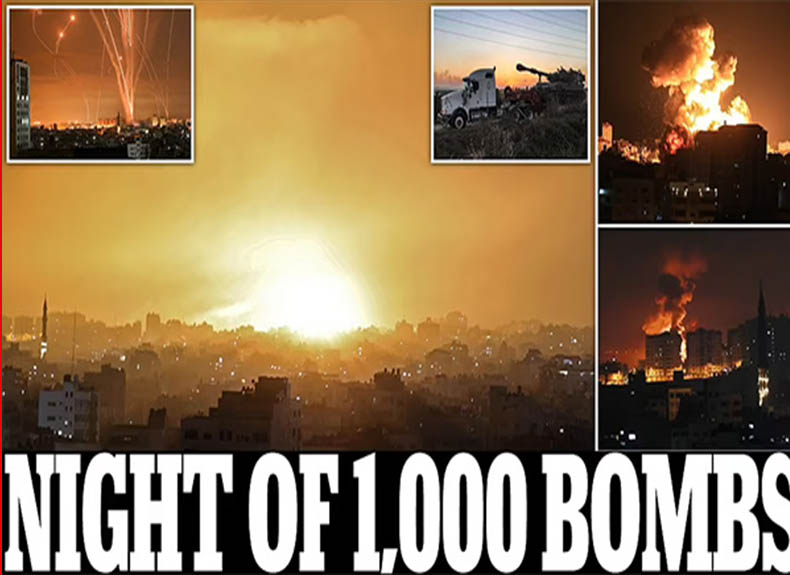 ‘নাইট অব ১০০০ বোম্বস’। আজ শুক্রবার বৃটেনের অনলাইন ডেইলি মেইলের প্রধান সংবাদ শিরোনাম এটি। এর অর্থ হাজার বোমার রাত। সহজেই অনুমেয়, এই শিরোনাম করা হয়েছে ফিলিস্তিনের গাজায় ইসরাইলের নৃশংস বোমা হামলাকে কেন্দ্র করে। বৃহস্পতিবার রাতভর গাজাজুড়ে উন্মত্তের মতো বোমা হামলা চালিয়েছে নেতানিয়াহুর বাহিনী। নির্মম সেই বোমা হামলায় গাজার রাত আলোকিত হয়ে উঠেছিল। অন্ধকার ভেদ করে বহুদূর থেকে দেখা যাচ্ছিল ইসরাইলের তাণ্ডবলীলা।
