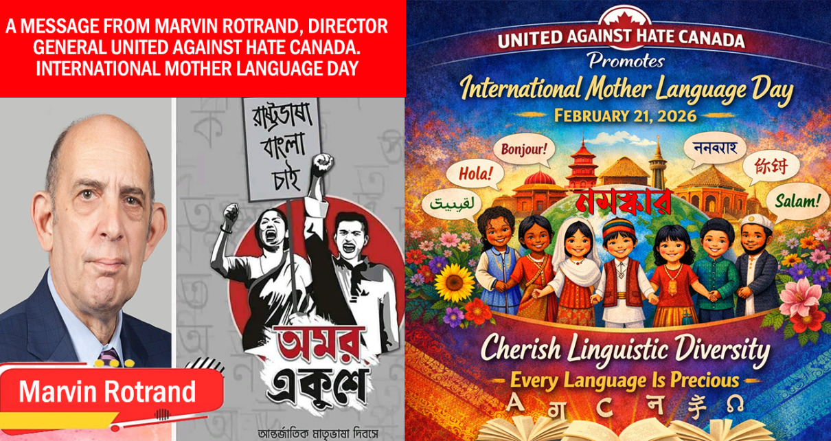 আগামী শনিবার, ২১ ফেব্রুয়ারি, বিশ্বজুড়ে পালিত হবে আন্তর্জাতিক মাতৃভাষা দিবস। আমি যখন Montreal সিটি কাউন্সিলর হিসেবে দায়িত্ব পালন করেছি, তখন প্রতি বছর ২১ ফেব্রুয়ারি উদযাপনের মাধ্যমে ভাষাগত বৈচিত্র্যকে উৎসাহিত করেছি। বর্তমানে ইউনাইটেড এগেইনস্ট হেইট কানাডার ডিরেক্টর জেনারেল হিসেবে আমি এই গুরুত্বপূর্ণ দিনের তাৎপর্য সম্পর্কে কানাডিয়ানদের সচেতন করার কাজ অব্যাহত রেখেছি।