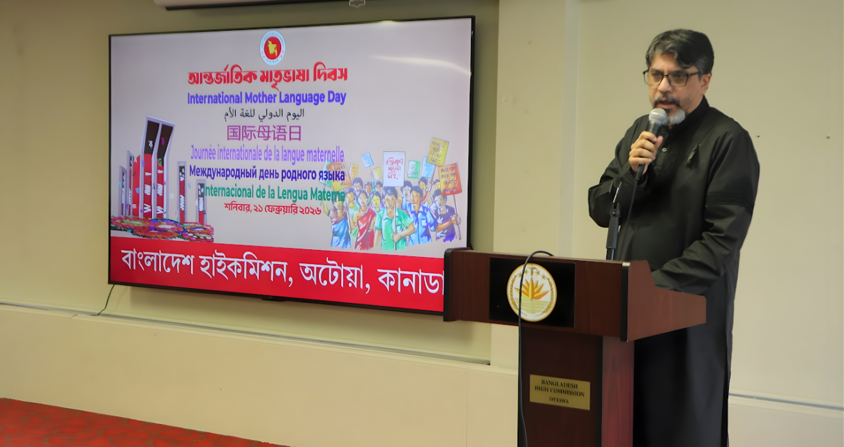 ২১ ফেব্রুয়ারি ২০২৬, অটোয়া: যথাযথ মর্যাদা, ভাবগাম্ভীর্য এবং বিনম্র শ্রদ্ধায় কানাডার অটোয়ায় বাংলাদেশ হাইকমিশন কর্তৃক অমর একুশে ও আন্তর্জাতিক মাতৃভাষা দিবস ২০২৬ পালিত হয়েছে। ১৯৫২ সালে মাতৃভাষার অধিকার রক্ষায় ঢাকায় ছাত্রদের সেই মহান আত্মত্যাগের সাত দশকেরও বেশি সময় পর আজও ২১শে ফেব্রুয়ারির চেতনা বাংলাদেশের সীমানা ছাড়িয়ে বিশ্বজুড়ে অনুরণিত হচ্ছে।
